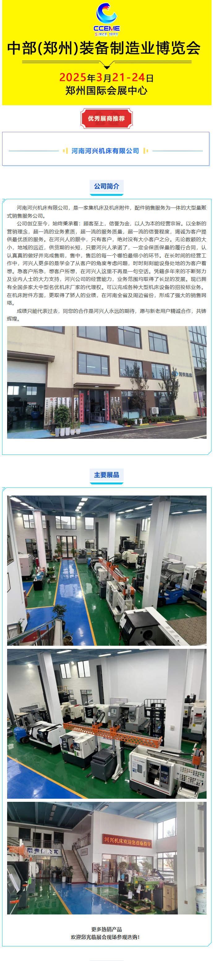中部(郑州)装备制造业博览会(www.ccieme.cn)重点推荐:郑州工业装备展, 郑州工业展, 郑州机床展, 郑州五金展, 郑州自动化展, 郑州机器人展